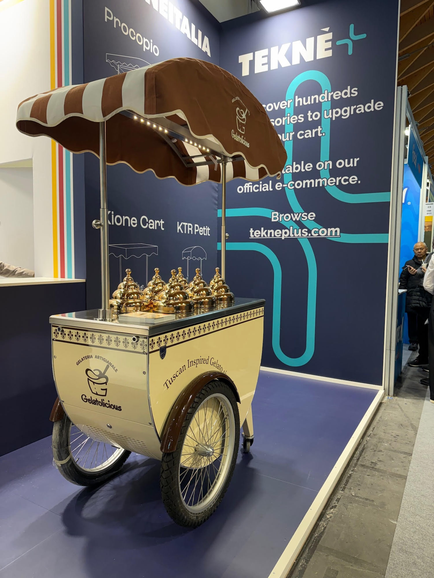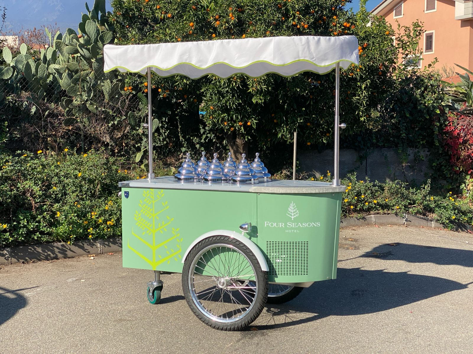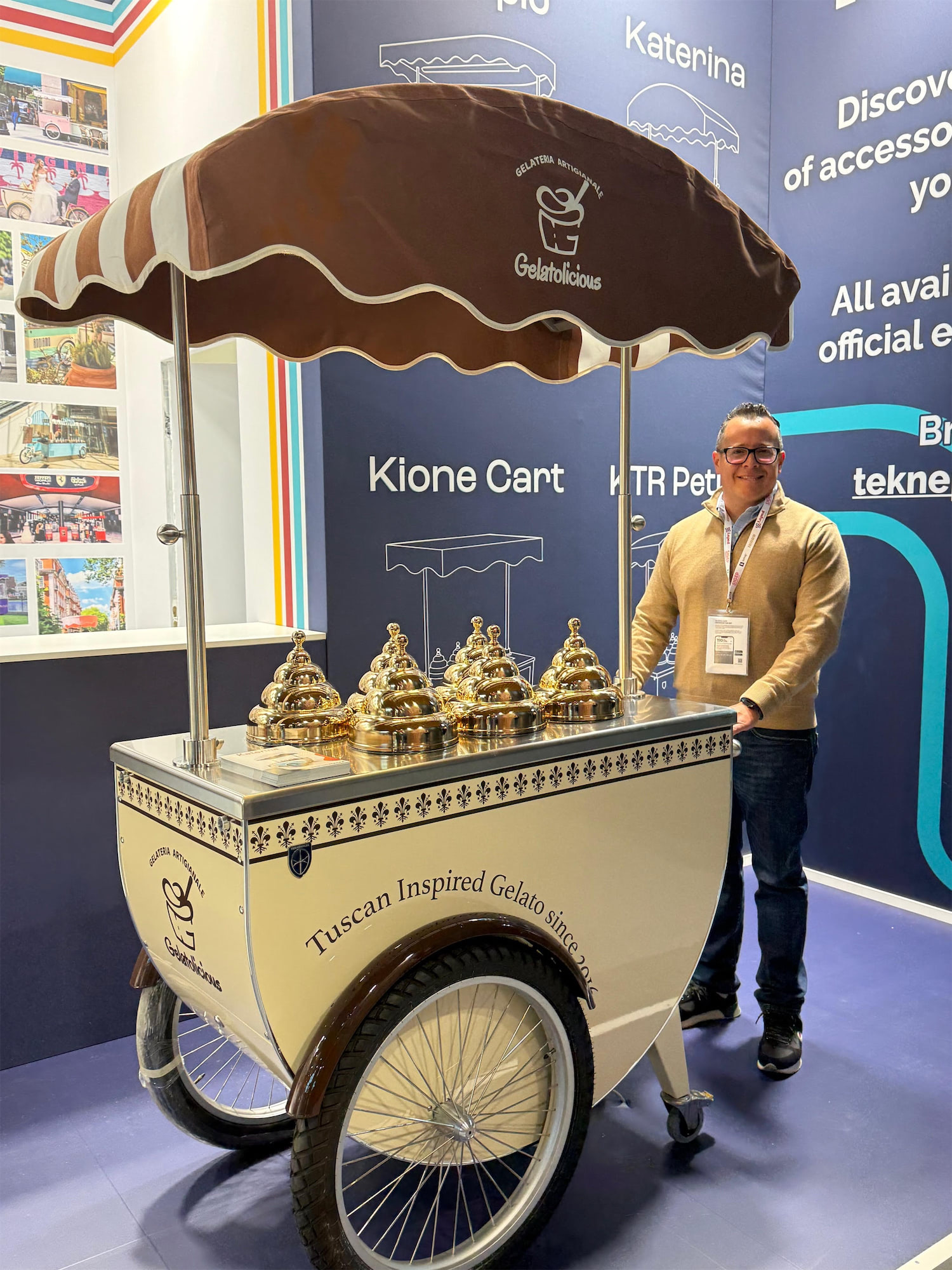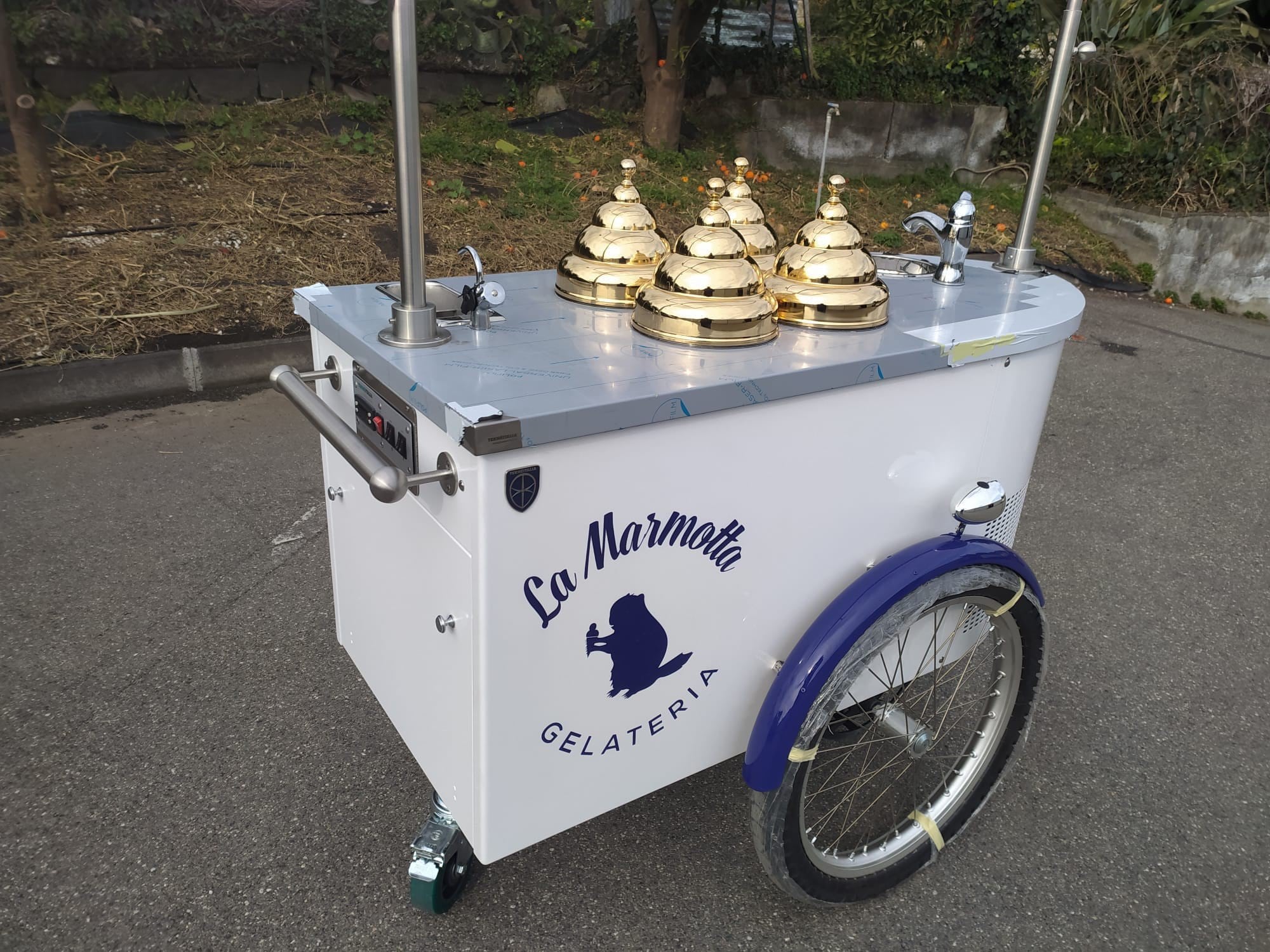 Mobile Gelato Carts add an elegant and delicious touch to catering events and suitable to take your product outside. The beautifully decorated and highly visible gelato cart is designed to market your product at outside events, farmers markets, weddings, birthday parties, and more. allowing guests to choose or mix and match their favorite flavors. What better way to authentically serve up gelato and impress your guests or customers?Our design team is able to provide you with drawings for a custom Pozzetti style gelato cart built especially for your needs. Carts are a great way to take your product outside your store or beautify your store’s inside! The customized cart is authentic and eye-appealing. Emboss your logo, choose your cladding, add your umbrella, make it unique. We’ll walk you through the process.